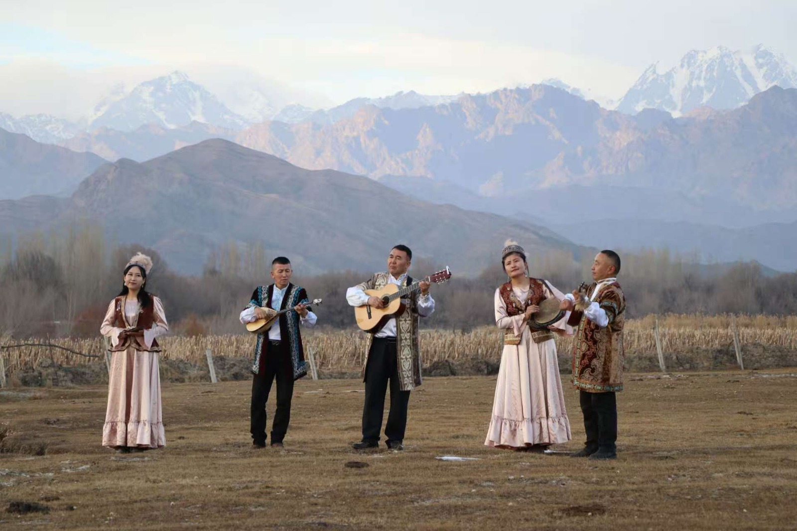 Музыкальный ансамбль синьцзянских пастухов исполняет песни о новой жизни Это сцена выступления музыкальной группы «Сыны Богды», созданной пастухами сельского округа Аксу района Кемберксен |