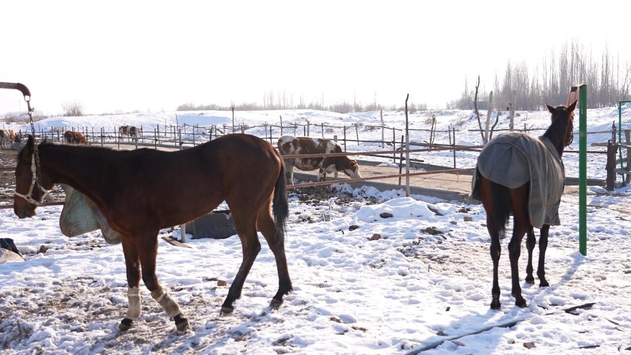 В зимнее утро солнечные лучи ложатся на землю, и житель южного микрорайона Синчэн города Хоргос Юй Лихуа уже выводит на тренировочную пробежку своих двух илийских лошадей. Белый пар от дыхания человека и коней переплетается со снежной пылью, взметаемой копытами, создавая живую и выразительную картину.